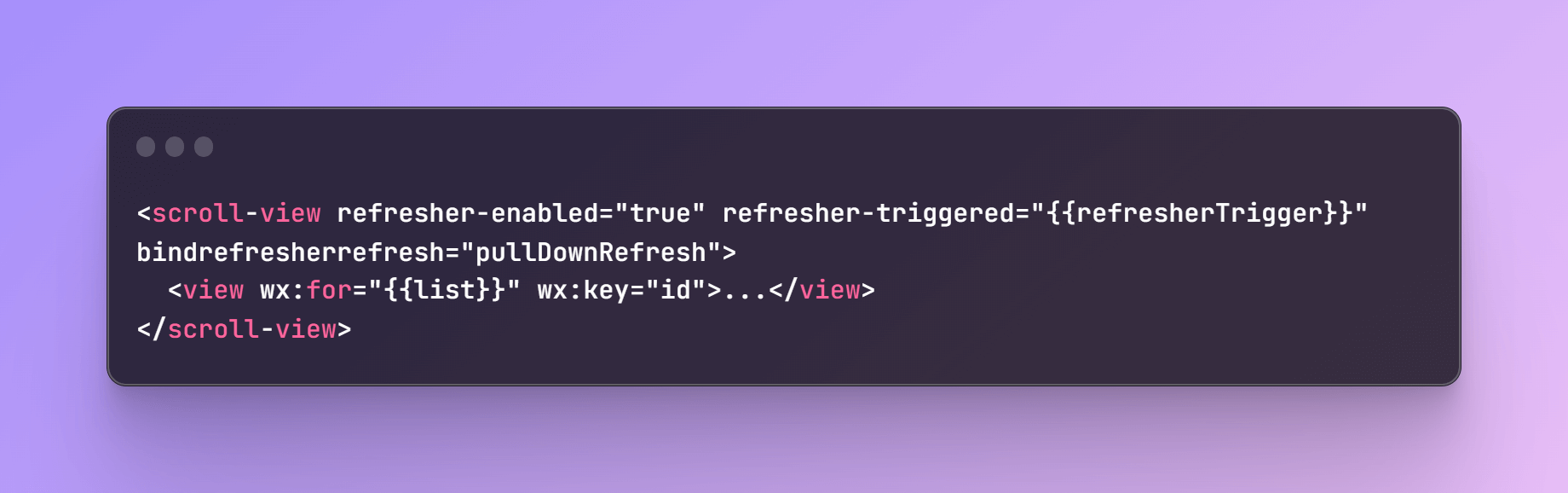 <scroll-view id="scrollList" refresher-enabled="true" scroll-y="true" enable-back-to-top="true" refresher-triggered="{{refresherTrigger}}" bindscrolltolower="reachBottom" bindrefresherrefresh="pulldownRefresh" style="height: {{scrollHeight}};">